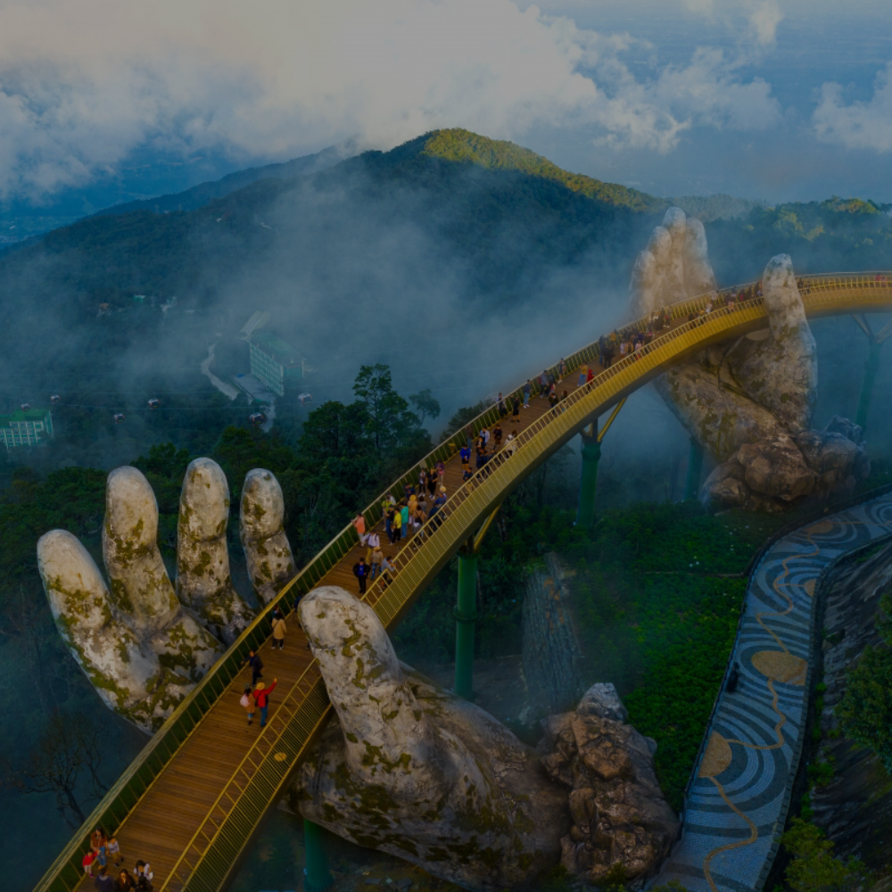 For a touch of magic, visit Ba Na Hills, home to the world-famous Golden Bridge, held up by giant stone hands emerging from the mountainside. Ride the scenic cable car to a European-style village in the clouds – a place where dreams meet reality.